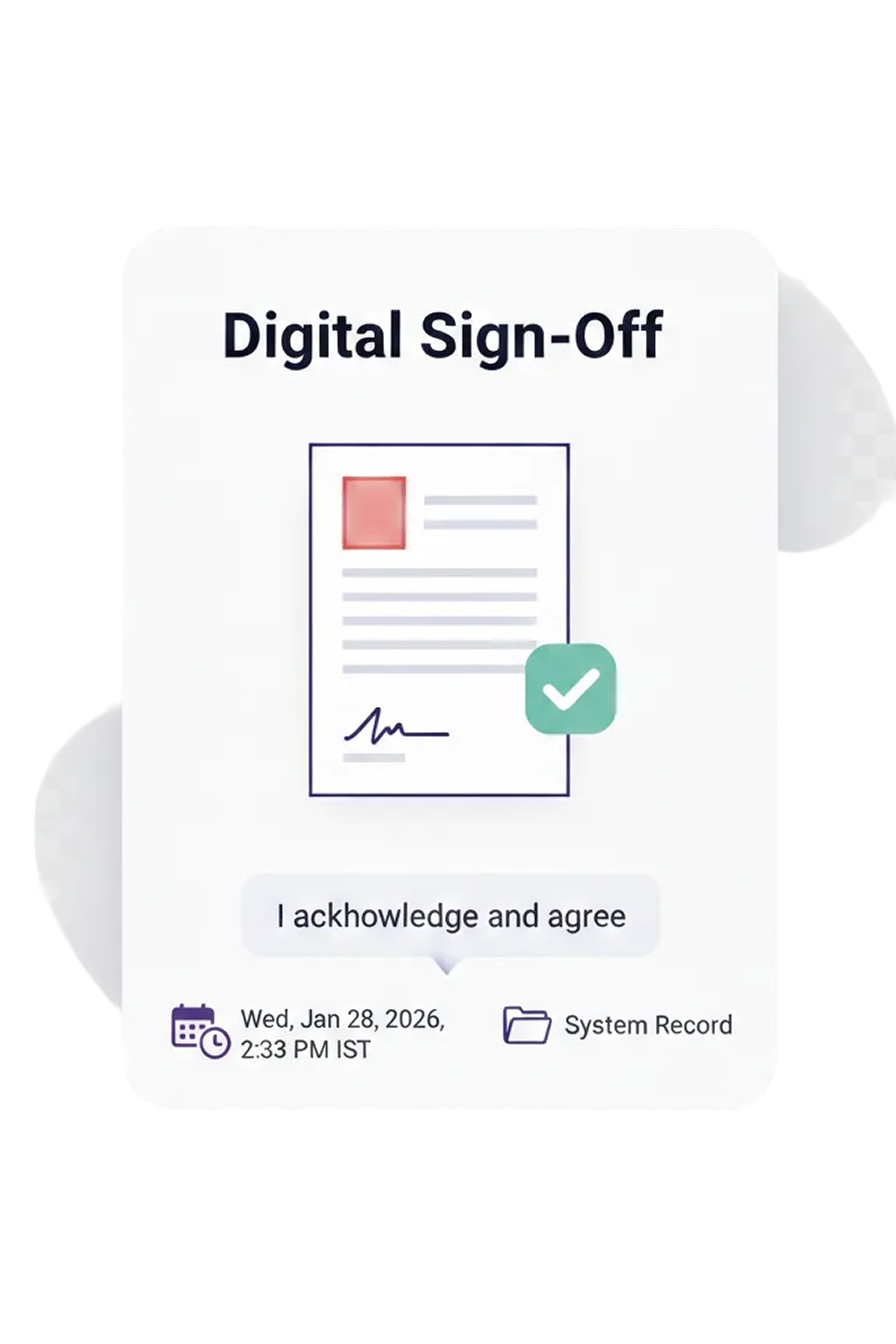Share compliance policies with targeted employee groups, collect digital acknowledgements and signatures, and track acceptance in real time. Every acknowledgement is timestamped and stored as a system record.